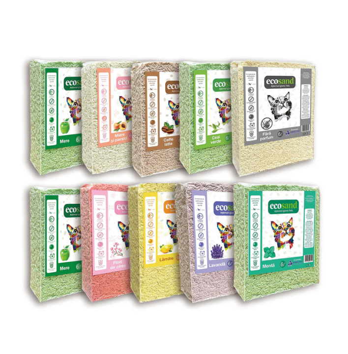 Un alt avantaj important este siguranța pentru animale. Nisipul tofu Ecosand este pe bază de ingrediente vegetale, fără substanțe agresive, fiind o opțiune mai blândă pentru pisicile care se toaletează frecvent și pot înghiți accidental particule de nisip. Pentru adăposturi și ONG-uri, acest lucru înseamnă mai puține griji legate de posibile iritații sau reacții adverse, iar pentru iubitorii de pisici de acasă – liniștea că au ales o soluție responsabilă.